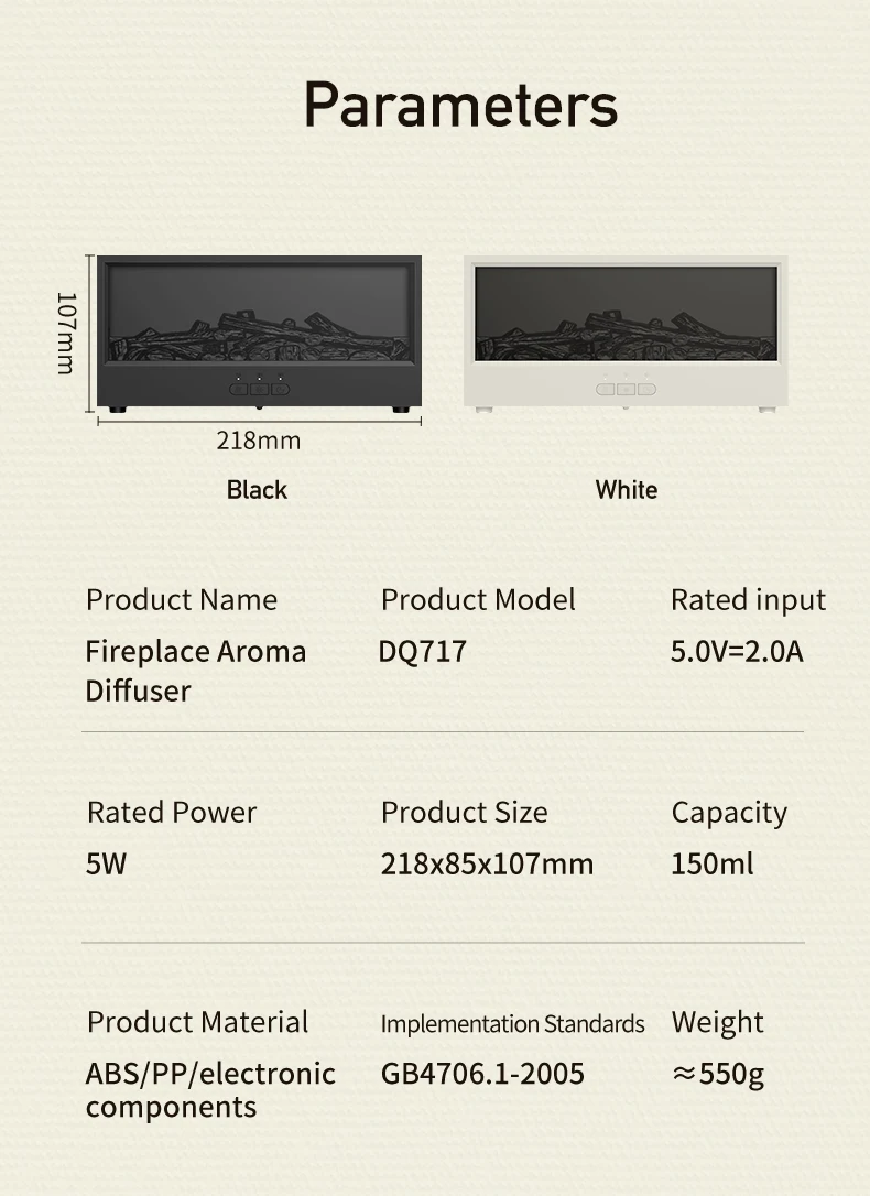 3D Simulation Charcoal Fireplace Flame Aroma Diffuser